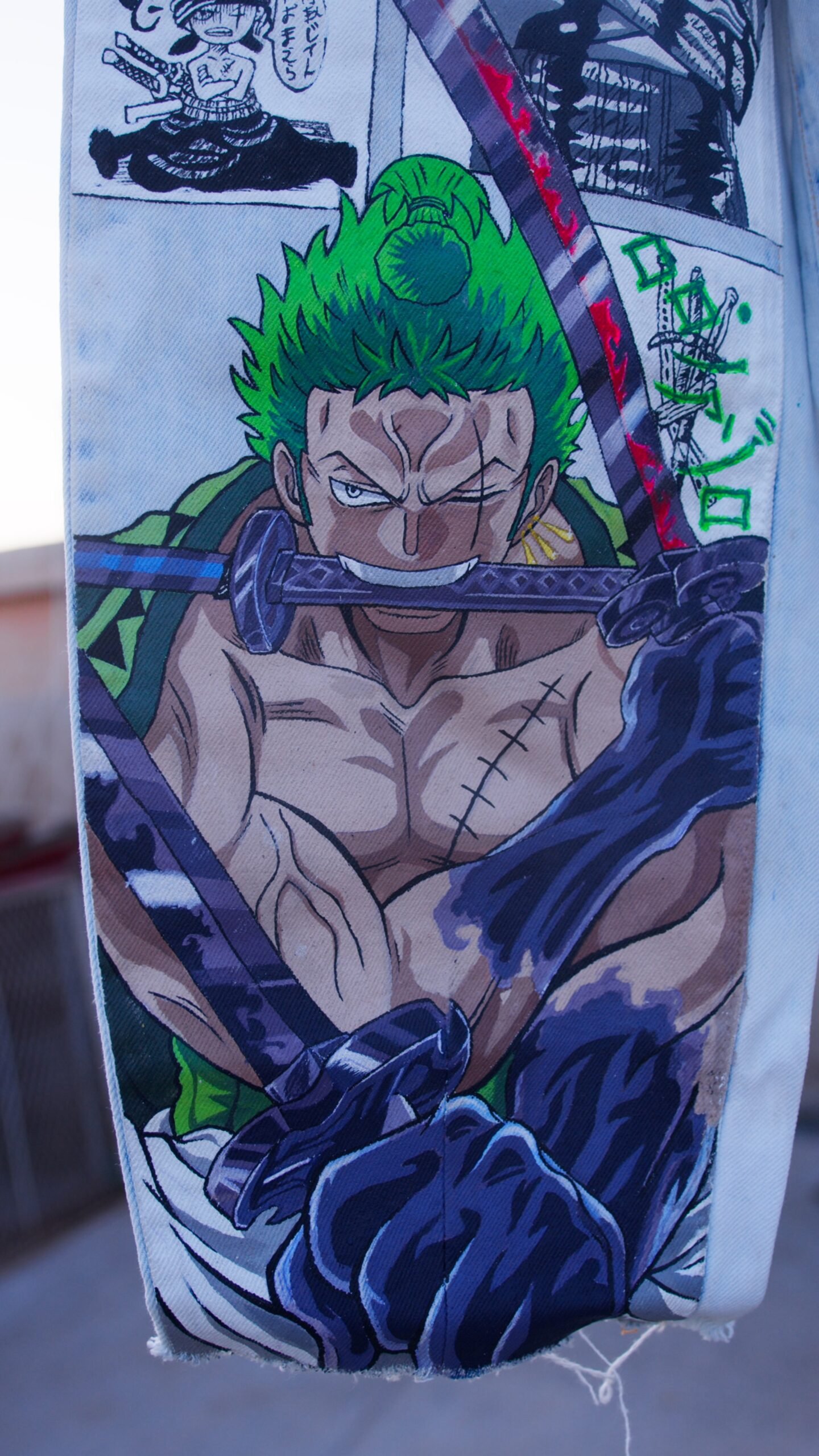 - This custom artwork is inspired by Roronoa Zoro from the One Piece series.